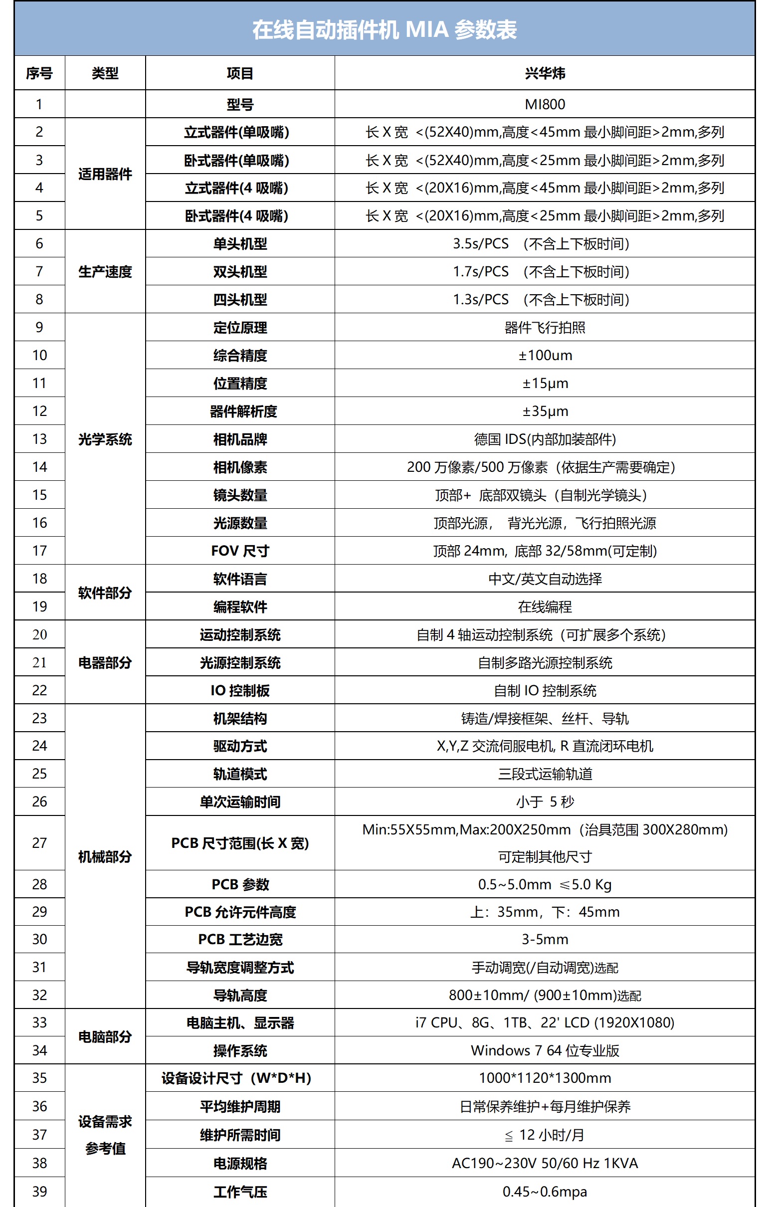 双头机型:平均1.7s/pcs ;